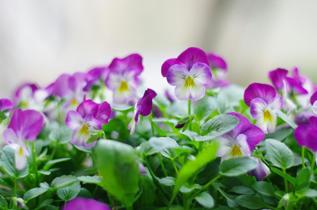Pensamiento: Estas bellas flores tonos violeta y lila, adoran el frío y se desarrollan de manera óptima cuando se exponen a la luz solar directa, especialmente durante las primeras horas del día. Sin embargo, también son lo suficientemente versátiles como para adaptarse a la sombra parcial, Si están en macetas, es importante moverlos ocasionalmente para garantizar que reciban la cantidad adecuada de luz. El riego debe ser moderado y regular, y es fundamental asegurar un buen drenaje de la maceta.